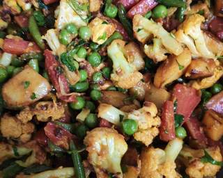 Inspired by the rustic, bold flavors of Indian roadside dhabas, this mix veg recipe is rich in spices and taste, without the use of onion or garlic. It’s a great dish to serve with chapati, naan, or rice for a delicious and balanced meal. Plus, it's a wonderful way to pack your diet with a variety of vegetables while keeping it light and flavorful.